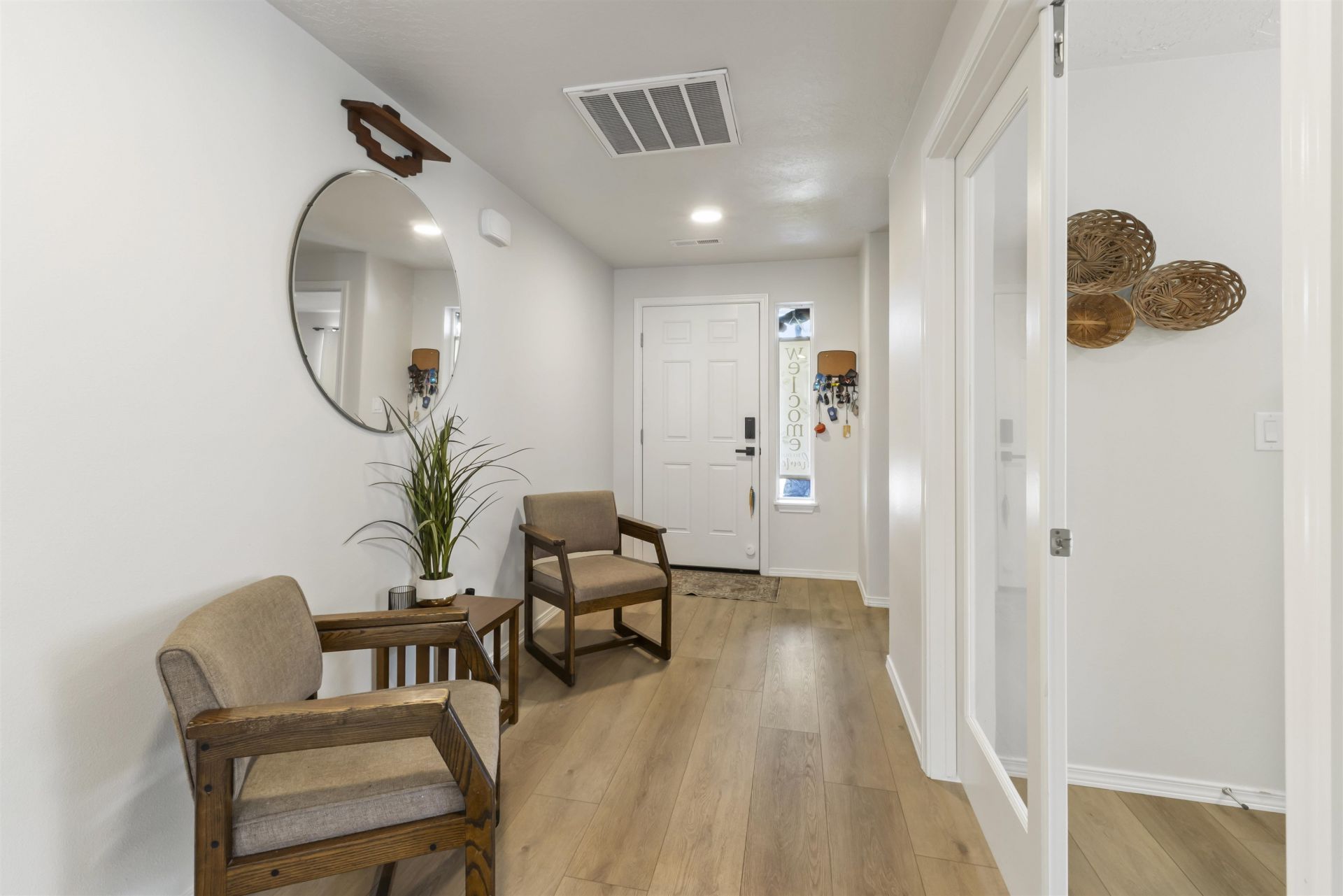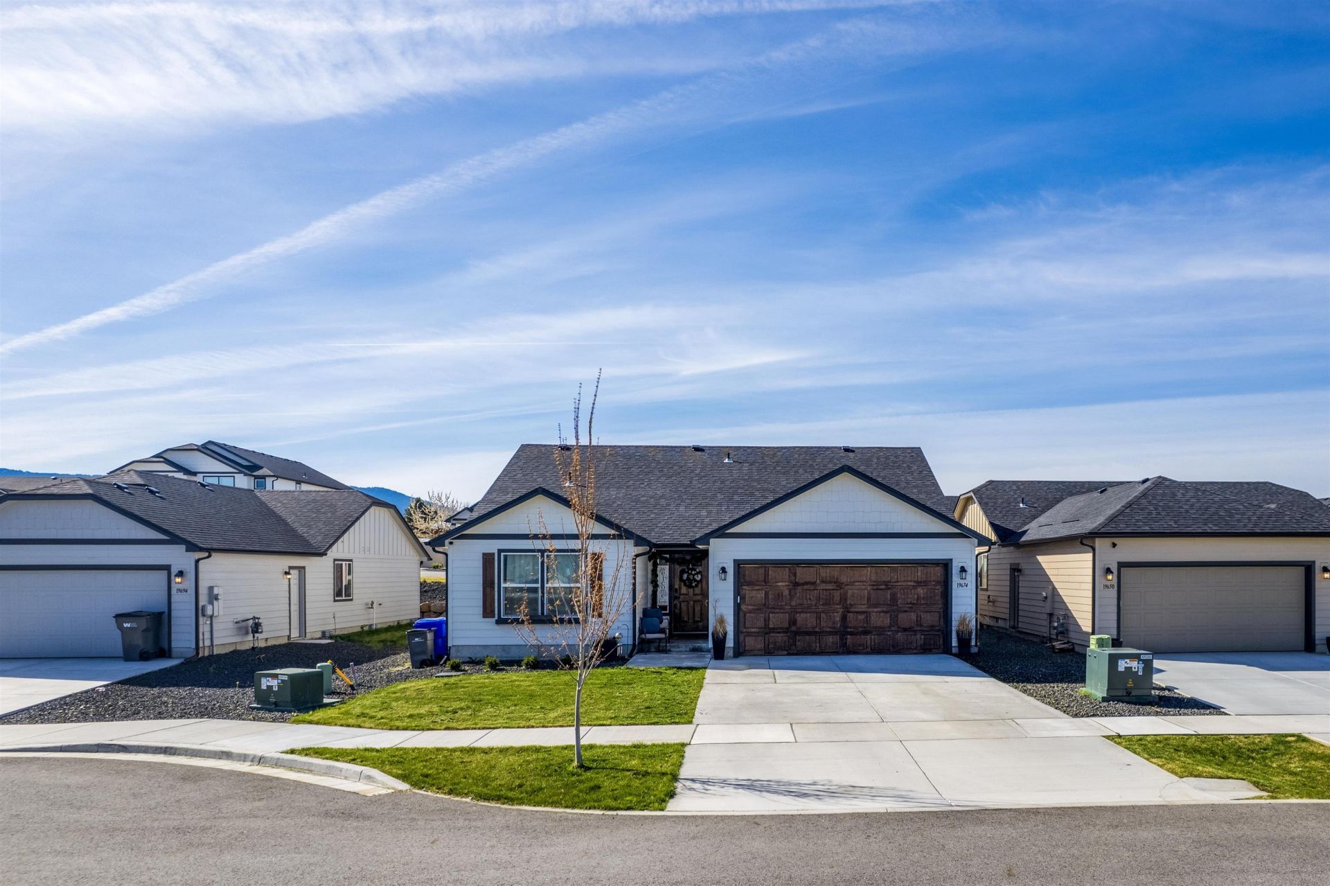 Beautiful single-level home in Spokane Valley featuring 1,408 sq ft of open-concept living and modern design. This 3-bedroom, 2-bath home offers a spacious layout with an award-winning kitchen, complete with breakfast bar, ample counter space, gas fire range, stainless steel appliances, and seamless flow into the living room and dining area?perfect for entertaining. Enjoy luxury vinyl plank (LVP) flooring throughout, offering durability and low-maintenance living. The primary suite is privately located with dual closets and an ensuite bathroom featuring double vanities. Two additional bedrooms provide flexible space for a home office, guest room, or hobby room. Step outside to a fully fenced backyard with a dedicated dog run, ideal for pets, plus a low-maintenance 5,484 sq ft lot. Large patio is the stepping stone to your private backyard oasis! Additional features include a 2-car garage for convenience and storage.